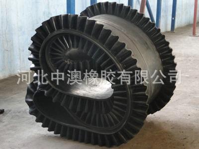 波形擋邊輸送帶選用先進(jìn)的原材料,采取獨(dú)特的制造工藝,其擋邊、橫隔板、基帶經(jīng)過二 次硫化法組合為一體。具有剛中有柔,柔中有強(qiáng)的不 脫膠、不掉塊的特點(diǎn);又有耐撕裂、耐曲撓的新穎結(jié)構(gòu)。同時(shí)具備一般擋邊輸送帶輸送角度大,傾角變換靈活,動(dòng)力消耗低,工作效率高等優(yōu)點(diǎn) 。 用途 :波形擋邊輸送帶被廣泛引用與港口、冶金、礦山、電力、煤炭、鑄造、建材、糧食、化肥等領(lǐng)域物料輸送。使各種散裝物料能以 0-90